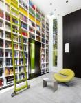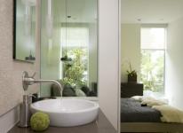 The sense of space in the retreat also benefits from the carefully placed windows that open to the sky and the canyon. Here glass is used in unexpected ways including a polished glass void at the corner with a view out to a lily pond and down the hillside.