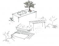 The site is handled as a single, unified garden. At the same time, each building has private outdoor areas disconnected from the rest. Roof gardens are part of the idea of seeing the whole design as a unified texture. The texture of the site is re-created with walls made from its own rocks and transitions from space to space. All buildings are set on different levels and are connected with outdoor spaces. So, in the texture of the settlement the street character is dominant, which has a spontaneous feel.