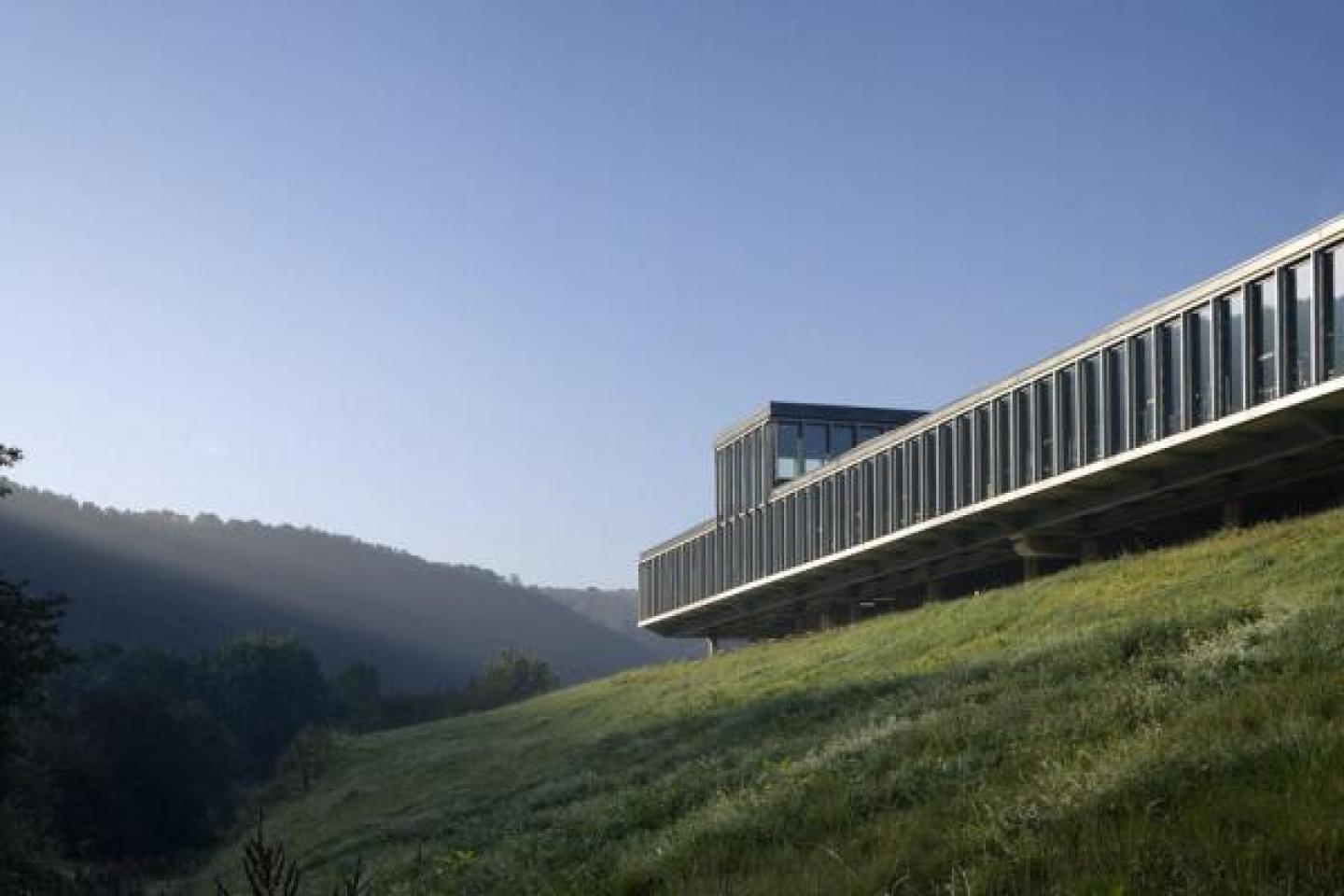 This is a factory construction intended for the manufacture of Hermès leather bags. Life in its workshops and its craft workare both enhanced through its interior fittings and view over the Meuse river. It is a platform standing on piles on a slope of the terrain facing the Meuse. Access is via a transversal bay that gives on to the administration space and restaurant and is also to be used for various enterprise events.