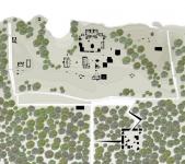 The strategy of intervention tends to reassume the tension of this twofold relation in a single design gesture. In this spirit, the museum assumes a hypogenous character establishing with its roof a platform that defines a glade in the surrounding space of the woodland.