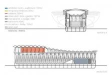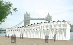 This project focuses on creating a green gallery that can be delivered to various locations on the River Thames and opens up to generate events. The exhibition spaces are zoned into a single volume and the cafeteria is combined with the observation area. The circulation sequence allows the visitors to flow from the entrance lobby to the observation area experiencing the architecture in the process. A living wall is inserted to vertically connect the lower volume and the upper volume as well as to characterize the circulation zone. The observation area is designed as a public garden and the cafeteria opens out to it. The façade consists of a series of light weight ETFE {Ethylene tetrafluoroethylene} bubbles framed with aluminum tube structure that is operable. During the day time, the façade can be opened up and display the art and the green wall to the public and during the night time, light can be projected to the bubbles and the gallery will become a translucent glowing box.