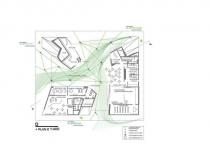 The pavilion is a tree-like structure, with a huge digital screen below the “tree top”. This is where all information is gathered and shared using RFID technology. Within the top, 3 different exhibition spaces are located. The structure is designed with top of the line sustainable solutions. The temperature management system uses the absorbed energy from the hot air to cool down the building. The outer layer of the building is covered with solar panels and the structural beams are made from light weight fibre glass. The building takes up the sustainability challenge and translates it into something beautiful. It becomes more than pure survival.