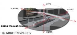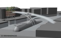 An asymmetrical glass bridge {idea of a take-off} makes it possible to cross water in every direction.
