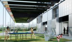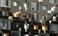 The project compactness, inherited from urban choices, is the occasion to reach very high thermal performances. The envelope is like a thermos flask, with a minimum of accidents interrupting insulation continuity. The volume simplicity opposes a rich and meticulous work of the facades treatment. The facade consists of two superimposed layers. The first layer, drawn by metallic structures, allows energy production through photovoltaic panels, works as a balustrade and plays the role of a sun breaker, regulating solar contributions all year long.