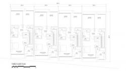 The building design consists in 4 single family units with a recreation area on the ground floor as well as a parking space and utility room. On the second floor a open plan containing living and dining area and the kitchen. The second as well as the third floor, open themselves generously to the outside trough the floor to ceiling glass wall, which gives the main exterior feature tho the townhouse. Finally on the thord floor are located the master bedroom, master bathroom and 2 secondary bedrooms.
