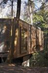 The open plan encompasses 1,800 square feet and two bedrooms. Rooms beckon with large sliding or pivoting doors. Living room walls dematerialize and become transparent, framing the view and bringing the outdoors in. The roof becomes an outdoor living space, which floats in the company of treetops and sunlight. Exotic woods and cabinetry throughout were fabricated in Bolivia, keeping costs down.