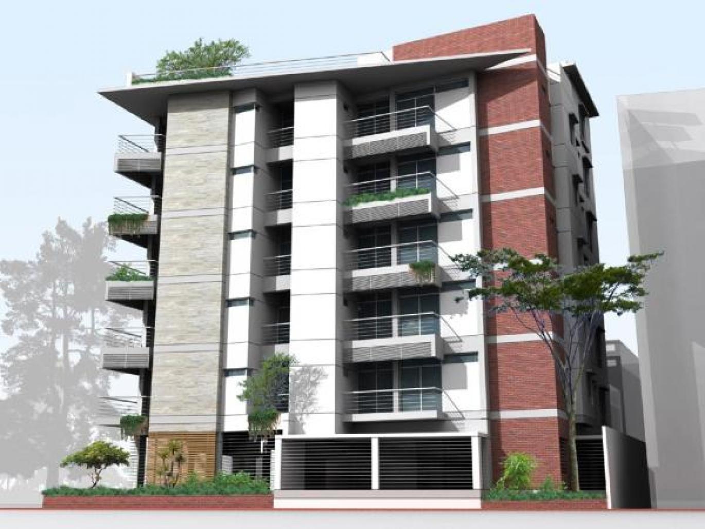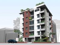 The site is located at a corner plot in the newly developed township “ Upashahar”. It faces an open and vast green field at the front side. The design solution permits to enjoy the open ground from each living unit. The ground level has been kept open by omitting opaque boundaries to extend the surrounding landscape into the building. The intension is to make the building a symbolic part of the immediate context. At southern part a small sky court with double height will break the monotony from the roadside and also will act as medium of socialization within the living units.