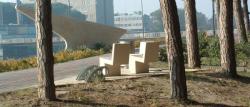 The paving is made of porcelain tiles with a bush-hammered surface laid out in a Palladian pattern. This kind of paving covers softly sinuous surfaces of the spontaneous dunes.