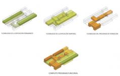 Finalist project International architecture competition. Madrid, Spain. 2006. Data: Renovation and extension of warehouse. Program: temporary and permanent expo space, educational centre.