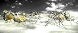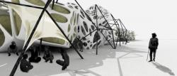 The wetland of Ebro Delta tends to loose the half of its land. The River Ebro discharges less than 1% of what the river used to discharge at the beginning of the 20th century. The dams, the fall in precipitation in its drainage basin and the excess use of water for irrigation cause the decrease of sediments transported to the area, resulting in the recession of certain sections of the delta. The reduction in flow encourages the intrusion of salt water that penetrates the river underneath the fresh water and reduces its depth, affecting important ecosystems that exist in the area. The proposed structure aims to direct different types of sediments through different angles and degrees of porosity, creating various ecosystems in time, which can evolve in emerged environments through the re-configuration of the landscape. Catalogues of porosity applied in cell configurations and various cell surfaces, using the voronoi tool, are used to define the protocol of differentiation and variation depending on the size of sediment and the desired degree of perforation in each area of the site.