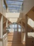 The central lightwell acts as a vent getting rid of excess hot air with the use of thermally controlled louvres behind a red wood rain screen. Sustainable materials have been used throughout including italian popular plywood {interior} and Red wood {exterior and furniture}