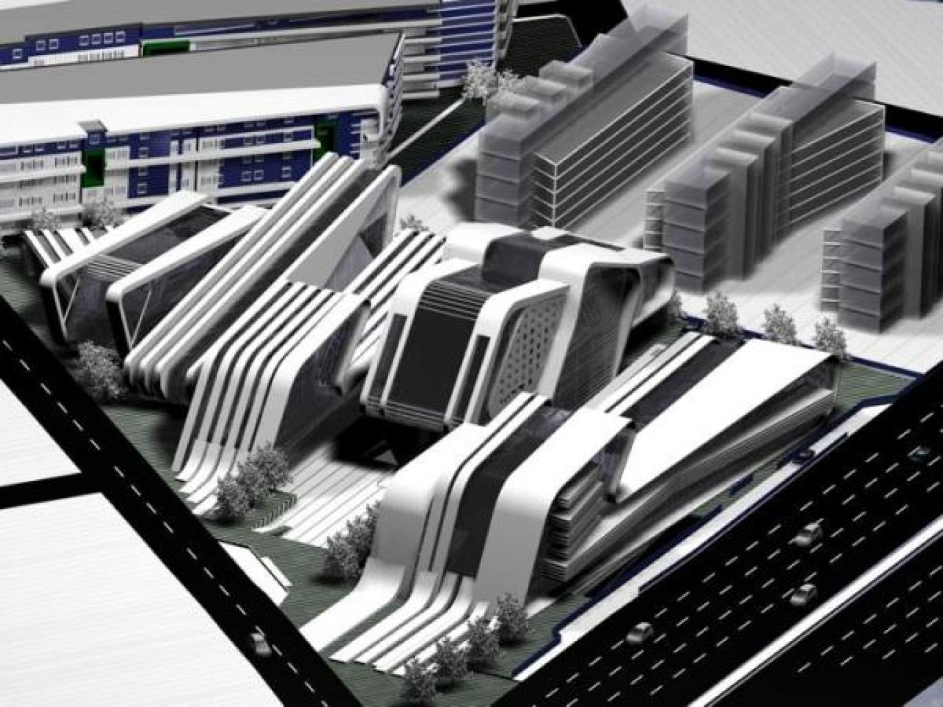 Locating the complex near the airport, have been an important factor at shaping bulks.