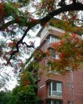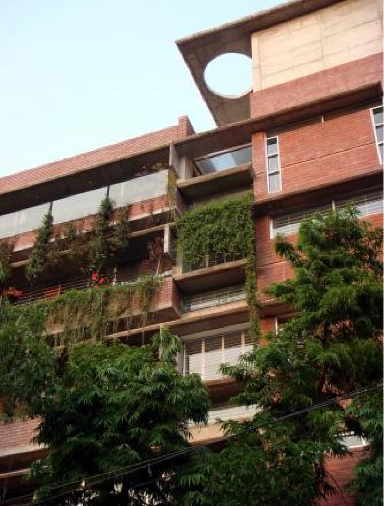 A small play field, number of trees including Mahoganies, Wood apple, Weeping Devdarus adjacent to the road on the west, an old Krishnachura on the south of the plot played the central role in this project. This six storied five family apartment building is located at Dhanmondi, a planned residential area of early sixties.