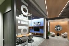 The layout of the office is meticulously planned to maximize functionality. Ergonomic workstations, collaborative spaces, and private meeting rooms are strategically placed to optimize workflow and team interaction. Open office areas are designed with adaptable furniture, allowing employees to configure their workspaces according to their needs, promoting flexibility and productivity.