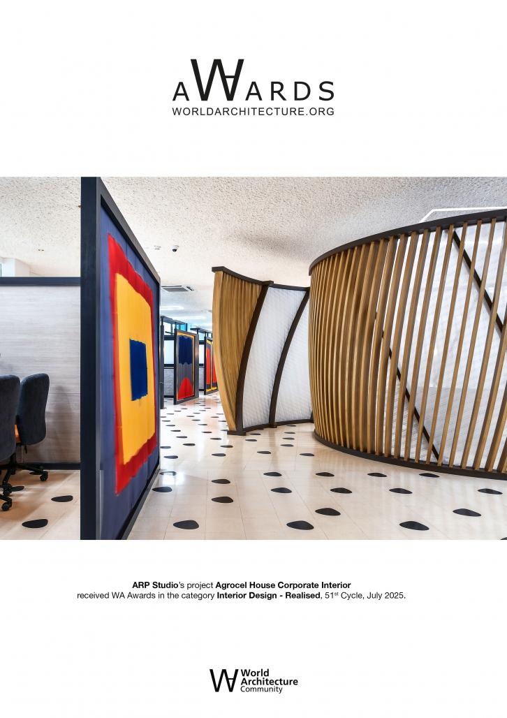 Agrocel House Corporate Interior by ARP studio in India won the WA Award Cycle 51. Please find below the WA Award poster for this project.