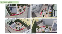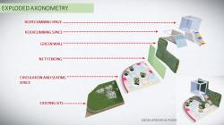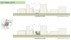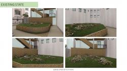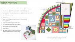 5) Green wall with a net for hiding surrounding structures and noise, engaging urban connectivity by screening surrounding residences and ensuring good air quality.