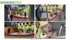 1) Seating and gossiping spaces for the elderly and children