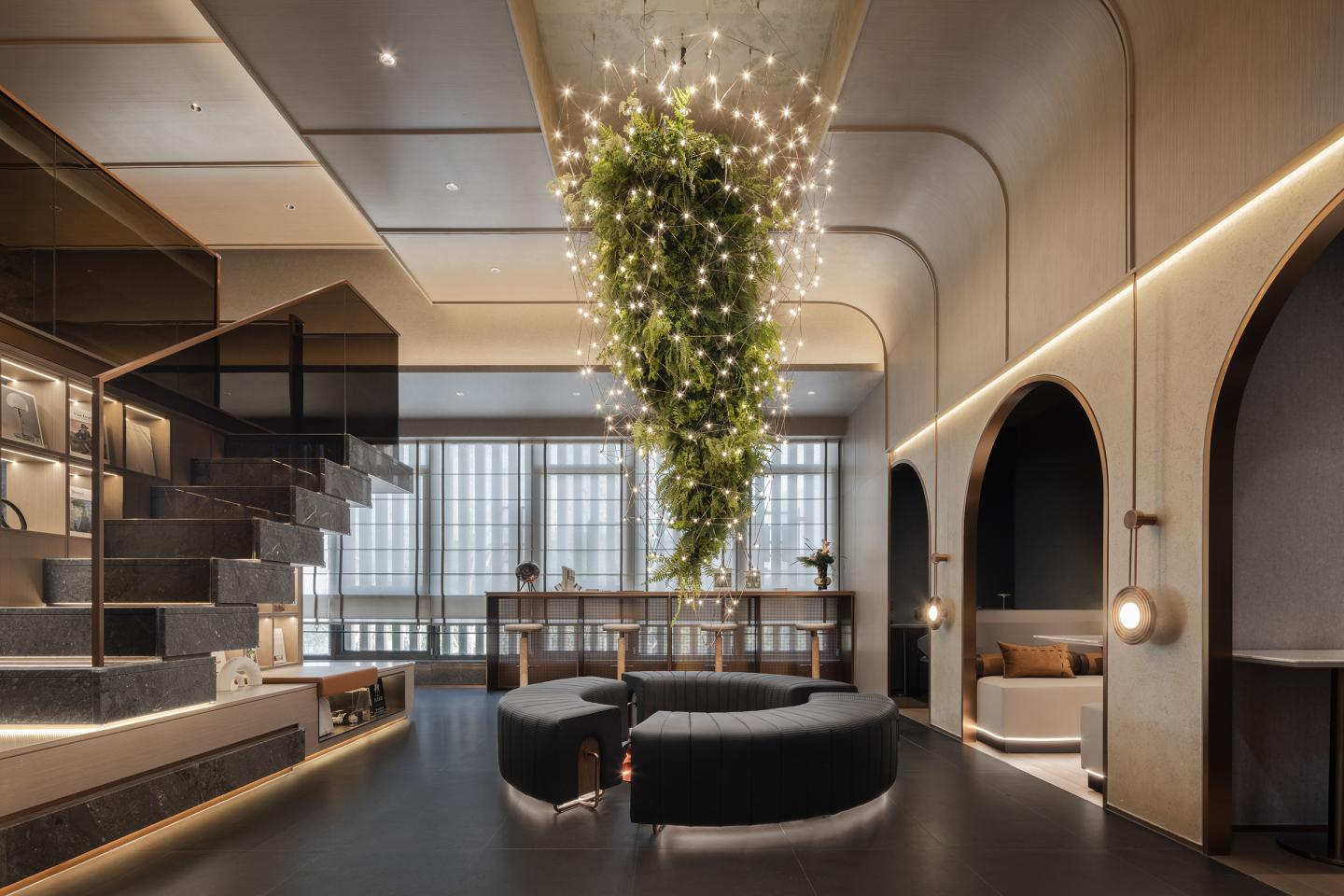 Enter the second floor to the middle transitional rest area of modern leisure. The space is connected with the book bar area and manual exhibition area. Large french window allow soft light to flow in, giving the whole space flowing light and shadow.