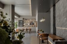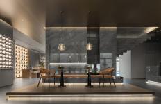 The staircase area is the starting point of the flow that links the entire space and is the design core that expresses this space. By creating a space exchange between movement and stillness through material texture and flowing light and shadow, the highly designed staircase, combined with the dazzling colors emitted by the internal lighting, feels like a time and space tunnel leading to the future.