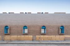 The interior and exterior surfaces are clad in brick; however, to emphasize the entrance, the southern façade is finished with locally sourced turquoise tiles. While the outer shell blends seamlessly with the historic fabric of the village, the interior reveals a more contemporary character. This modern expression is enhanced by the exposed by the structural elements and visible mechanical ducts.