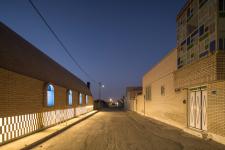 The site, measuring roughly 22 by 11 meters with a total area of 251 square meters, is located in the heart of the historic fabric of Khalilabad village. One- and two-story houses border the plot on the north, south, and east sides, while to the west stood a now-demolished school. The materials and architectural language of the surrounding buildings, predominantly brick and mud plaster, along with the remnants of the school, played a significant role in shaping the design. This contextual sensitivity allowed the building to sit naturally within its setting, blending in without appearing foreign or imposed.