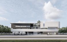 Guided by nature and light, circulation flows intuitively. Minimalist geometric façades gain gravitas from horizontal lines, while measured openings and sunshades address the tropical climate—striking a balance between "precision production" and "organic respiration."