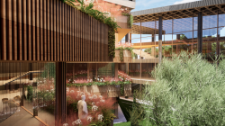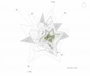 Envisioned as a forest-like landscape, the entire site becomes a metaphorical woodland, within which the architectural program is embedded like a treehouse, a structure that folds nature into itself. This relationship is not only visual but spatial: large courtyards, vertical voids, and internal galleries open the structure to light, air, and greenery, dissolving the traditional boundaries between built space and nature.