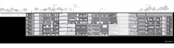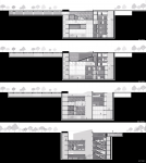 The structural system is designed as a hybrid structure combining concrete and steel. While the concrete walls connect to the ground, the steel structural systems lift the lightweight volumes off the ground and suspend them.