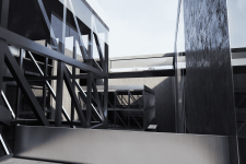 The suspended glass masses between these two walls spatially represent the project's themes of memory and visibility. Due to their wide spans and transparency, these masses are supported by steel truss systems. The glass surfaces reflect the fragility of memory while creating permeable, light-filled voids within the darkness of the underground.