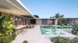 Les Jardines de Guereo is a contemporary villa immersed in a lush tropical landscape, designed by Anvana Architects as a sanctuary of serenity and elegance. The architecture blends clean, horizontal lines with raw textures, native vegetation, and generous glazing, creating a fluid transition between the built environment and the natural surroundings.