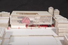 The project is located in the center of Ayvalık on a 1240 m² plot. Due to the preservation of existing foundation remnants, the buildable area is limited to approximately 800 m². The main structural system of the building is made of steel, and the spherical main volume is designed as a mega structure elevated on three steel columns. This sphere is clad with PTFE-coated fiberglass mesh on its exterior surface. The building is designed with a ground floor plus two additional levels, and the total enclosed area is 1900 m². Transitions between open, semi-open, and enclosed spaces are carefully considered, with circulation supported by amphitheater-style seating, ramps, and platforms at different levels. The project also includes accessibility solutions suitable for individuals with disabilities.