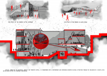 Functioning as a planetarium and digital exhibition space, the sphere represents the digital knowledge of the future, in contrast to the stone memory of the past. The preserved foundation remains of the old school, approximately 40 cm high, form the spine of the project. These remnants are not merely protected but actively integrated into the spatial narrative. They become part of a continuous and experiential circulation path. Visitors enter the site through a ramp that begins among the foundational remains. This ramp both establishes a connection with the historical traces and gently follows the site's topography. At the end of the ramp, the upper street connection provides a strong pedestrian relationship with the existing urban fabric while significantly enhancing the site's accessibility.