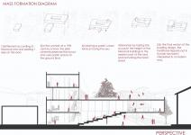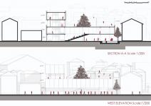 The pedestrian axis along the rear street constitutes a key element of the design strategy. Visitors entering from this axis are led through a spatial journey that culminates in the urban terrace and subsequently transitions into the library. The top floor hosts a quieter, more focused area, specifically designed for researchers studying the history of the city.