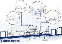 Designed as a contemporary carpentry workshop and restoration center, the proposal brings production and social life together