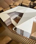 To respond to the scale and elevation of nearby structures, some volumes were lifted off the ground, creating hovering masses that offer openness and shadow. The roof was articulated with broken lines to resonate with the surrounding buildings, combining contextual sensitivity with a contemporary architectural language.