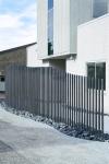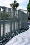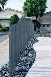 The louvers are arranged in a curved formation and sway slightly when pressure is applied, giving them a gentle, swaying feel, even though they are made of steel.