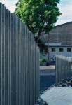 We used vertical steel louvers with a mottled finish for the approach wall to reduce the oppressive feeling.