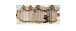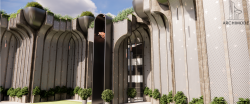 The overall form of the building is composed of a series of lines and curves resembling piano keys or musical mandalas. These lines and shapes convey a sense of movement and energy, pushing the design towards a dynamic and action-oriented feel.
