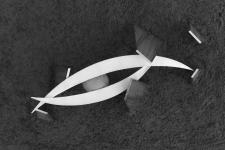 The overall form of the "OAS/S-NEST" art installation is like a bird spreading its wings, responding to the most primitive natural connection and migration instinct of mankind. As a symbol, the bird represents ancient power and the original impulse of life, just like people's awe and look up to nature. Its structural language shows a sense of futuristic feeling and tension: the superstructure floats in the sky, and the luminous spheres are suspended in it, like the energy core from the future; the "bird's nest" structure composed of mirrors and geometric blocks below is like a future spacecraft landing on the surface, reflecting the imagination and exploration of the unknown future.