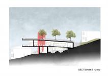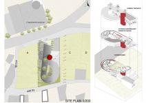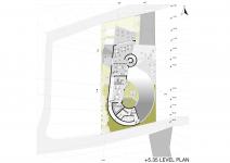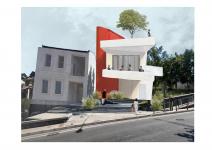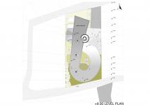 This project redefines a collective public space through food culture, topography and memory. Located in the Damlacık neighborhood of İzmir, a neighborhood with strong social traditions, the design proposes an architectural common space centered around shared food production and communal time. A range of interconnected programs—including a kitchen workshop, demonstration kitchen, fair space, and open-air cinema—are organized to support social interaction and the continuity of local habits. The architecture responds to the slope of the site by integrating a continuous ramp that defines both circulation and form. The roof is also constructed as a ramp, creating a fully accessible “urban terrace” that can also be used as a social platform and an urban connection point. Vertical circulation is supported by a cylinder-shaped core consisting of stairs and an elevator that connects all floors from the urban entrance to the terrace entered from the neighborhood, working as both a functional and symbolic fulcrum. The design prioritizes fluid movement, open visibility, and layered public use. By weaving circulation with gathering functions, the building becomes an extension of the terrain itself. Semi-open and open-air spaces enhance interaction while adapting to seasonal use. Through its stepped and sloped geometry, the architecture creates a continuous spatial gradient—inviting users to move, gather, and participate across multiple levels. The spatial strategy also aims to foster inclusivity and strengthen collective memory through everyday habits and shared public routines.