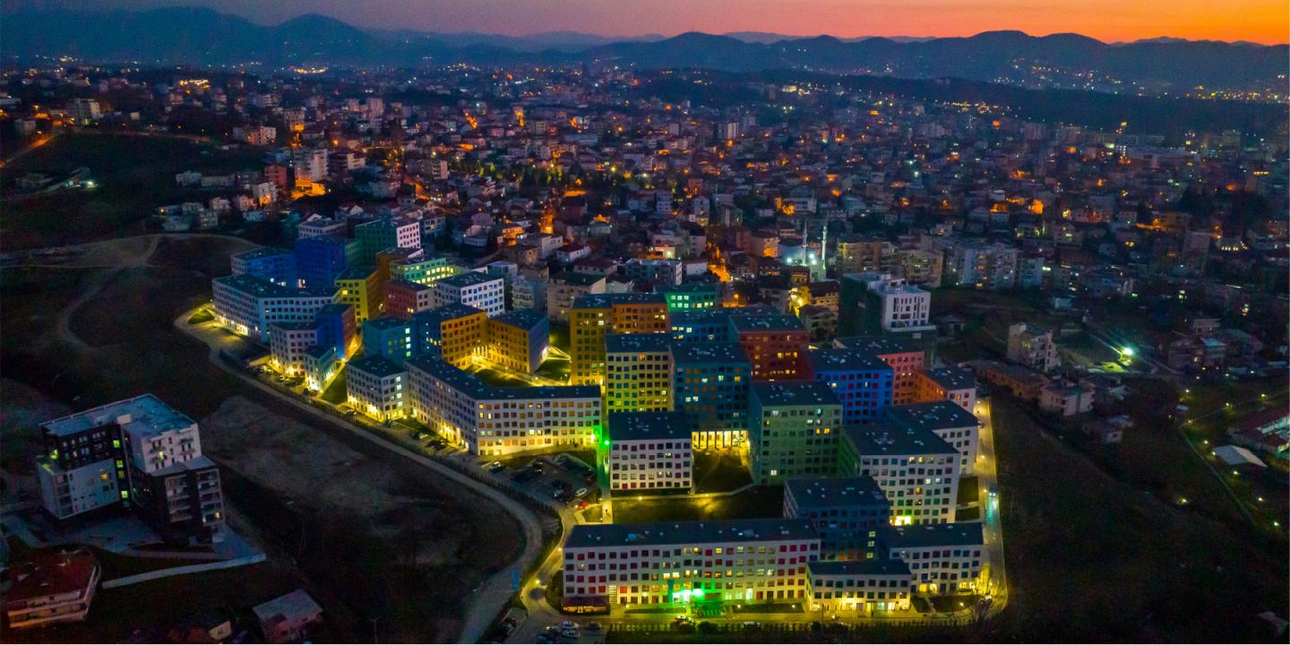 The project covers a plot of land in the eastern part of the city, bordered by mountains and former communist quarters to the north, and informal settlements from the 1990s to the south. The site has a very prominent slope: the difference between the lowest and the highest point is 27 meters, an equivalent of a nine-story building.