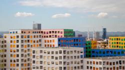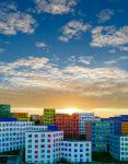 The project's manifest use of color is a reference to the initiative of Tirana’s former mayor Edi Rama to paint the city’s communist-era apartment blocks in the early 2000s. A limited color palette, applied in various combinations to exterior walls, window frames and shutters, gives each façade its own, unique expression. The openings are organized in a system that uses standardization to create diversity by shifting their position and subdivisions. The roofs are treated as a fifth façade as the stepping configuration of the development makes them visible from the upper buildings.
