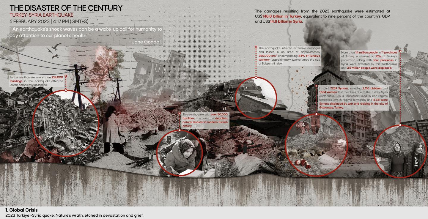 The catastrophic earthquakes that struck Turkey and Syria in February 2023 served as a stark reminder of the devastating power of natural disasters and the profound impacts they may have on human settlements. With a combined magnitude of 7.8 and 7.6 on the Richter scale, these twin earthquakes unleashed a trail of destruction that left a mark on the region for years to come. The death toll surpassed 59,000, with countless more injured and displaced. Cities, especially Gaziantep, were reduced to rubble, their infrastructure shattered, and their communities deeply scarred. This project addresses the challenges of post-earthquake life revitalization, including refuge and health, social and cultural, economic, and infrastructure through the use of Nature-Based Infrastructures (NBI) global concept.