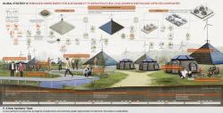 Low-tech super adobe local materials. Volunteer-driven community engagement.
