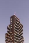 The architectural language favors a minimal yet assertive formal expression in pursuit of a distinct architectural identity. The vertical continuity of the mass is counterbalanced by horizontal lighting elements, establishing a lighting strategy that defines the perception of the façade both during the day and at night. This approach enhances visibility after dark and reinforces the building's recognition along the arterial corridor.
