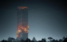 At the top of the tower, the design opens up into a large, stepped terrace framed by a grid of exposed terracotta columns. This level functions as a collective amenity zone for residents—offering semi-open lounges, informal seating clusters, and panoramic views of the city. The design extends the idea of a rooftop from a single-use utility space to a true lifestyle experience.