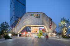 The retail design adopts a streamlined architectural form. The façade is articulated into three layers: a transparent ground-level glass curtain wall, a textured aluminium panel system, and a glass wall framed for signage. These overlapping elements evoke the interplay of mist and cliffside. Day and night views are holistically considered, with lighting seamlessly integrated into the façade’s texture. Two atriums of varying scales provide flexible space for exhibitions and events, while multiple entrances enhance accessibility. A skylight above the main atrium brings natural light deep into the interior, blurring the boundary between indoors and out.