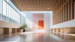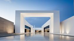 Inside, the museum unfolds into vast, open areas designed for interaction and reflection. The exhibition spaces are laid out in a modular fashion, providing flexibility to accommodate various art forms and cultural displays. The high ceilings and wide-open corridors give visitors room to explore the collections at their own pace, with light, neutral tones emphasizing the art without distraction.