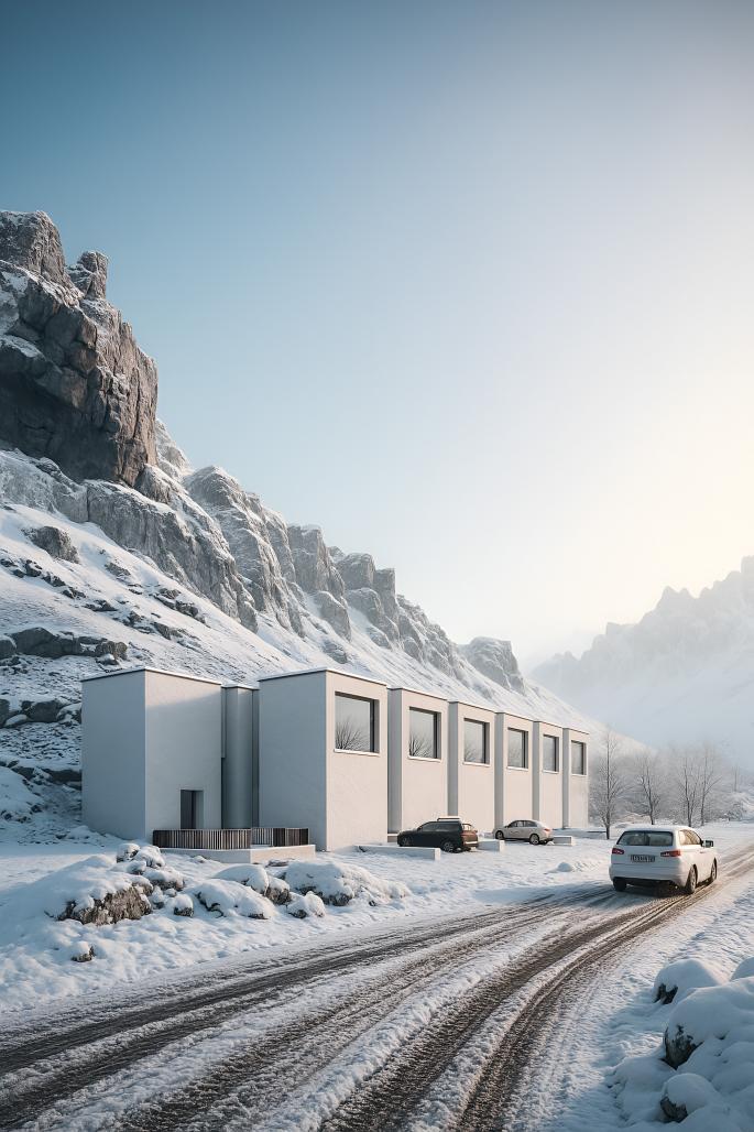 Rock, Water, Crack — this fundamental triad forms the conceptual core of Riftline, a project that seeks to embody the dialogue between permanence and transformation. The massive volumes evoke the primordial solidity of stone and mountain, an elemental presence that anchors the composition in the language of geology. Yet, these monolithic bodies are not inert; they are alive with tension, fractured by fissures that draw visitors inward, inviting them to descend into subterranean mysteries and the dim, resonant spaces of ancient cave systems. This is an introverted architecture, born not from surface display but from hidden depths, reminiscent of narrow tectonic ruptures formed under immense geological pressure. These openings, carved by forces both violent and patient, gently guide the volumes outward, allowing a rhythm of compression and release that shapes the spatial experience.