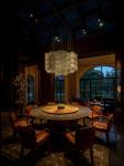 The crystal glass chandelier evokes the essence of water and the dragon. In ancient Eastern cosmology, the dragon transcends rigid totemism, manifesting instead as the living spirit of water. Both embody the cosmic principle of fluid strength and graceful resilience. Passing through the entrance to the first-floor seating area, the city’s clamor fades behind. Here, one glimpses the crisp, dry Tibetan air, gradually interwoven with the gathering warmth of human presence.